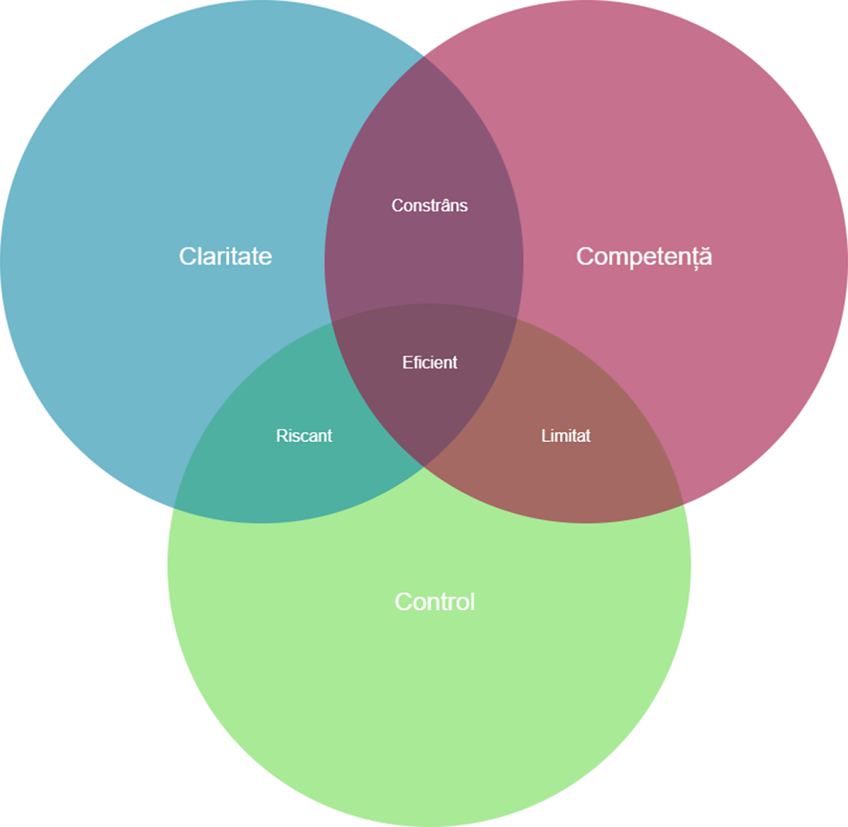Atunci când unul dintre aceste elemente lipsește, performanța devine instabilă. Lipsa clarității face deciziile limitate și reactive; lipsa competenței transformă autonomia într-un risc, iar lipsa controlului menține echipa încorsetată, incapabilă să se adapteze. Numai la intersecția acestor trei dimensiuni apare echilibrul, acel spațiu în care deciziile sunt rapide, coerente și aliniate scopului comun.