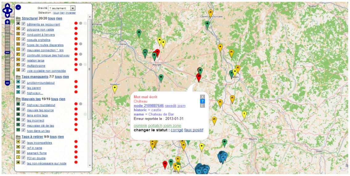 Osmose este o aplicație de linie de comandă Java și o aplicație web care poate fi folosită pentru a citi, a scrie și a manipula datele din OSM. Osmose, al cărui nume înseamnă OpenStreetMap Oversight Search Engine, este unul dintre instrumentele pe care le utilizăm pentru a detecta problemele din hartă.