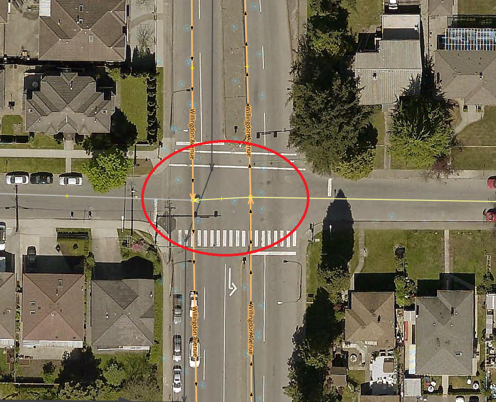 Un exemplu de eroare invalidă este prezentat în Figura 9. Această eroare face parte din categoria "dead-end one-ways", în care se identifică drumurile cu sens unic care nu sunt conectate. În imaginea de mai jos se poate observa faptul că aceste drumuri sunt conectate, așadar eroarea nu este validă.