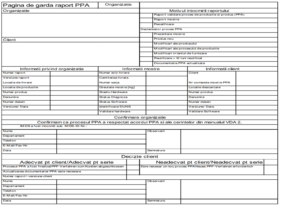 Un alt aspect important pentru furnizor este faptul că acesta trebuie să parcurgă procesul de PPAP mai întâi la nivel intern folosind piese de serie reprezentative fabricate în condiții reale de producție - adică produse exact pe linia, cu echipamentele și cu parametri de proces stabiliți pentru producția de serie.