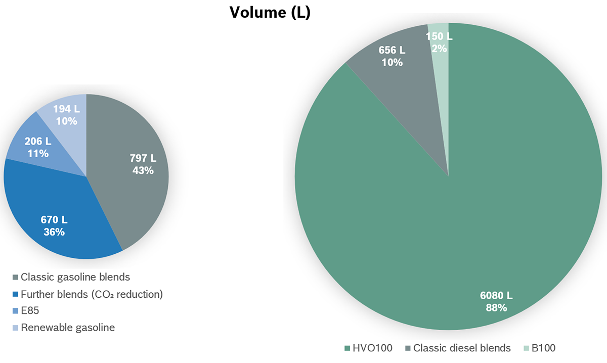 Combustibilii sintetici și regenerabili oferă o modalitate rapidă de a reduce emisiile. Acești combustibili pot fi folosiți direct în motoarele cu combustie internă existente (drop-in), care își păstrează conformitatea cu standardele actuale și reduc, în același timp, semnificativ, emisiile de gaze cu efect de seră. Pe parcursul Tour d'Europe, combustibili precum HVO100 (ulei vegetabil hidrotratat), benzină regenerabilă, E85 și biodiesel (B100) au fost testați pe drum. Procesul well-to-wheel măsoară emisiile de CO₂ pe întreg ciclul, de la producerea combustibilului până la utilizarea sa în autovehicule. Conform acestui indicator, emisiile pot fi reduse cu până la 83% pentru anumite tipuri de combustibil, demonstrând că autovehiculele de astăzi pot atinge deja reduceri semnificative.