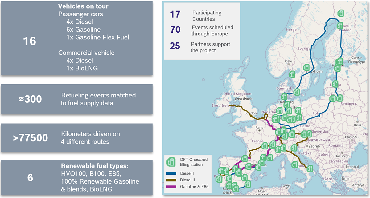 Pentru a demonstra aplicabilitatea acestui concept în viața reală, Bosch a orchestrat proiectul "Tour d'Europe" în cadrul căruia automobilele au călătorit în jurul Europei folosind combustibili regenerabili. Proiectul a arătat că putem deja face transportul mai curat, fără electrificare la scară largă, prin utilizarea combustibililor potriviți și a monitorizării digitale.