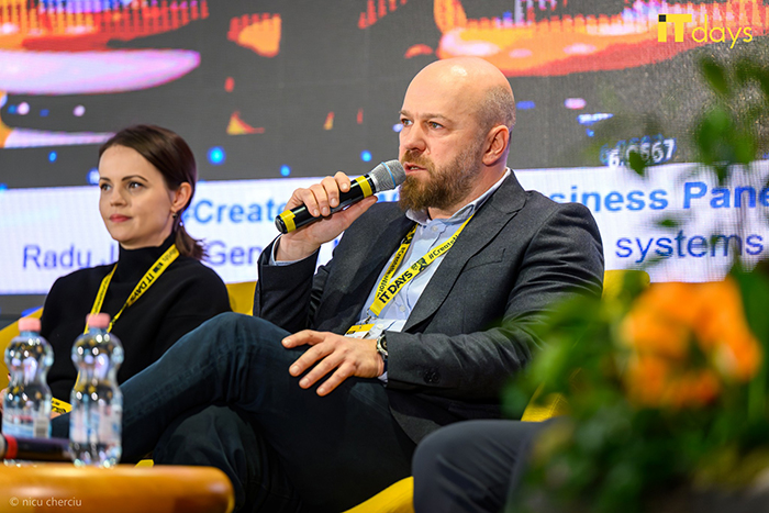 Radu Jinga: Și în .msg avem ceva similar cu ce s-a discutat, am colaborat cu start-upuri pe care le-am încurajat să dezvolte idei, dar nu avem chiar aceleași structuri ca la GlobalLogic, deoarece nevoile sunt diferite. În afară de intraprenoriat, termenul cu care noi rezonăm foarte bine este libera inițiativă, adică materializarea ideilor bune cu care vin colegii noștri. Zona de educație ne este foarte dragă. Noi am crescut colegi încă de pe băncile facultății. Încă de acum 16-17 ani când am început să activăm în România, am demarat cursuri SAP. Pentru noi partea de educație a fost un diferențiator, dincolo de competiția de pe piață care, pe scurt, se referă la a lua oameni unii de la alții. Am dezvoltat programe cu sens care și-au propus să aducă foarte repede pe cineva de la nivel de an terminal sau pre-terminal la nivel de profesionist care poate activa în munca cu playeri mari la nivel de business. Inovația e o formă de liberă inițiativă. Nu o văd neapărat ca o formă de antreprenoriat sau intraprenoriat în exclusivitate. Acum două zile, unul dintre producătorii auto pentru care noi dezvoltăm soluții și facem sisteme; a venit în vizită la noi. Noi lucrăm de peste zece ani la sistemul respectiv. Am vorbit multe despre AI, despre cum poate AI-ul să învețe, dar nu aș pune astfel de inițiative în sfera de antreprenoriat sau intraprenoriat.