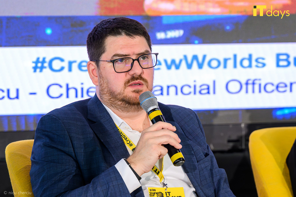 George Călinescu: Banca Transilvania este, în primul rând, o bancă, dar avem mulți colegi care activează în zona de IT. La ultima numărătoare, au ieșit 1000 de colegi în IT, dintre care 600 sunt developeri, incluzând CodeCrafters. Dacă adăugăm Salt, sunt și mai mulți. Sprijinim antreprenoriatul prin produsele pe care le oferim antreprenorilor, dar și prin inițiative prin care încercăm să venim în întâmpinarea unor nevoi pe care le au dincolo de produsele bancare. În ceea ce privește clienți mici și foarte mici, avem produsul nelimitat. Poate ați aflat că acel produs nelimitat a fost lansat în urma unei analize a efectului de rețea efectuat împreună cu universitatea UBB din Cluj pentru a vedea câte legături sunt între clienții noștri și produsul pe care îl ofeream. Studiul ne-a permis să oferim acel serviciu în cele din urmă. La momentul actual, avem 40% din piața de companii nou deschise din România, care își deschid primul cont cu BT-ul. Îi ajutăm prin inițiative în cadrul campusului pe care îl avem în București la STUP. Acolo am adunat tot ce este necesar pentru cineva care dorește să își deschidă o companie și nu știe de unde să înceapă. Prin CodeCrafters am dorit efectiv să testăm implementarea unor moduri de lucru specifice unei companii de IT, deoarece noi am fost de la început un mix de informație din zona bancară, dar și din zona IT. Avem undeva la 300 de colegi la CodeCrafters care este o companie de IT 100%. La Salt am vrut să creăm primul FinTech creat 100% în România. Am pornit de la 0 cu câțiva colegi de la BT. Cifrele vorbesc de la sine. Au undeva la peste 650000 de clienți, la un an și jumătate de la lansare. Salt este o bancă internațională care lucrează și cu români din străinătate, iar noutatea este că nu există unitate fizică. Avem doar aplicația și un call center uman.